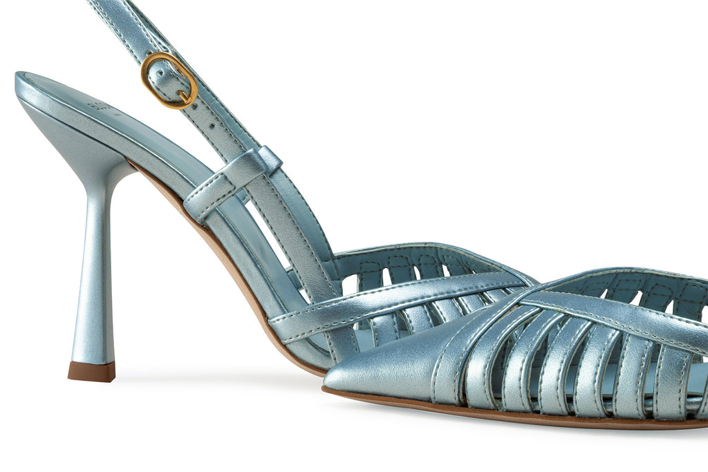 La chaussure raffinée et sexy par excellence. Touchez le ciel du bout des pieds avec Lila bleu irisé